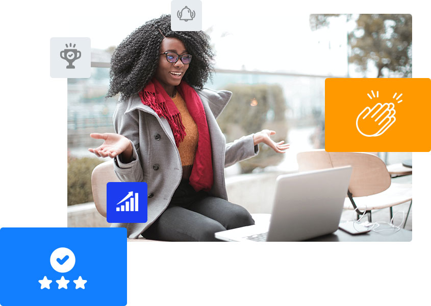Encourage learners to complete quizzes and courses by awarding certificates, points, and badges as they progress. Reward them for individual tasks, or for completing a group of courses!